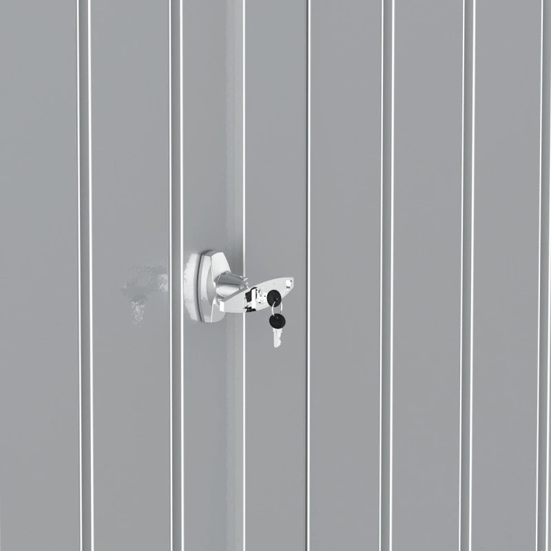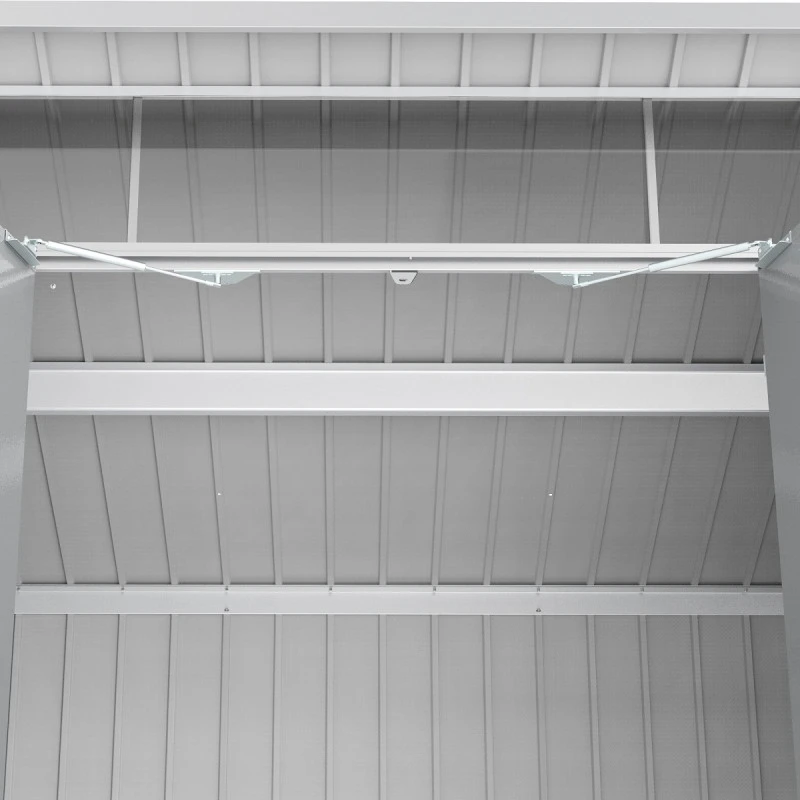 Robuste et d’une durabilité accrue, l’abri de jardin en métal 5,22m² Duramax mettra vos affaires en toute sécurité. La porte battante équipée d’une serrure cylindrique et de deux clés limitera fortement le risque d’invasions indésirables. Renforcée et doublée, elle bénéficie d’une épaisseur d’environ 33mm. L’ouverture et la fermeture sont très rapides et aisées puisque les vérins à gaz y sont disponibles. À l’arrière de l’abri, vous disposerez également d’une gouttière pour évacuer sans effort les eaux de pluie.