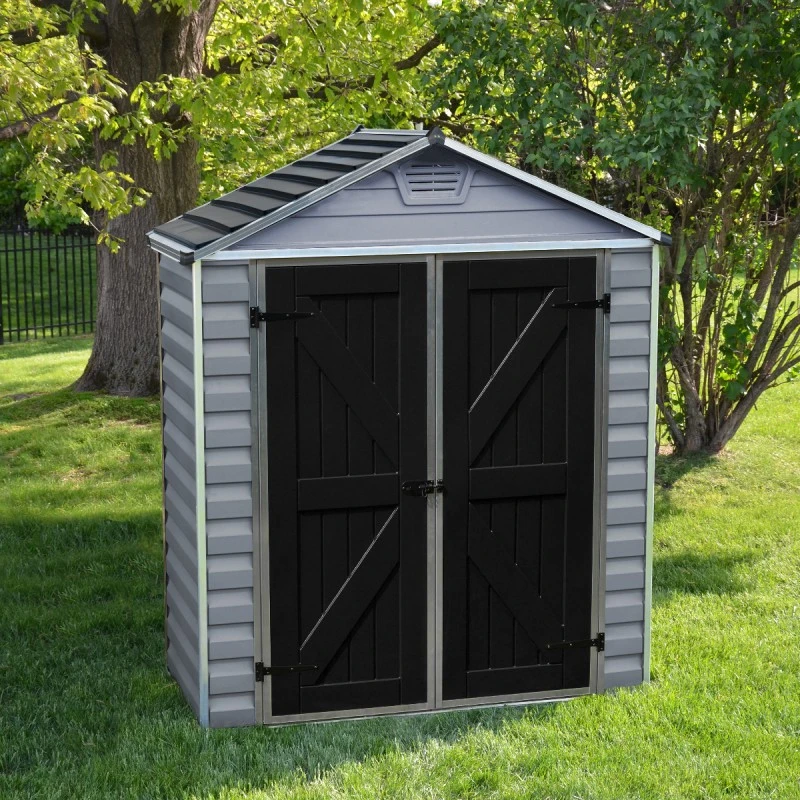 Voici un abri ayant une faible emprise au sol mais qui développe un volume de rangement très fonctionnel, tout en apportant une belle touche esthétique avec ses coloris contemporains, l’abri Skylight Deco gris de Canopia by Palram. Le toit à double pente a un aspect extérieur opaque, pour préserver votre matériel des regards extérieurs, mais de l’intérieur il s’avère être translucide, vous procurant une douce lumière pendant la journée.