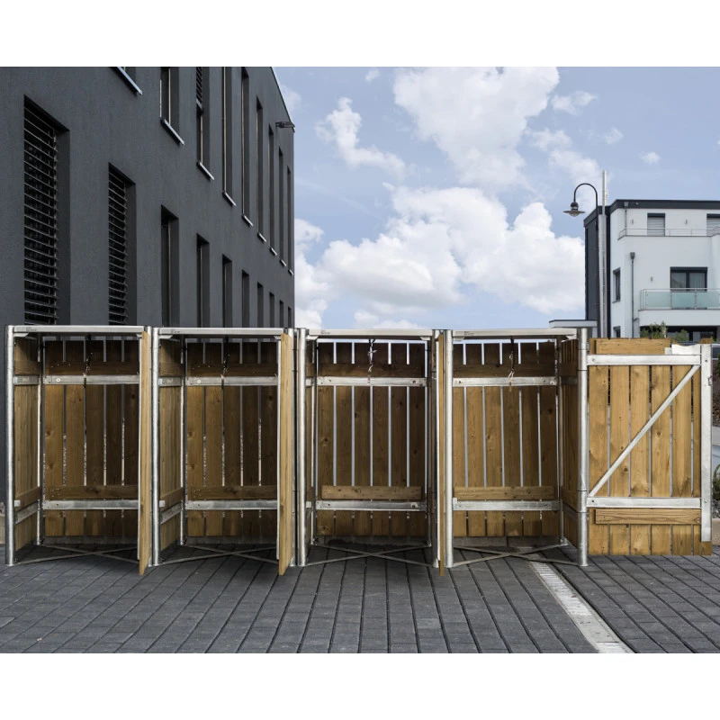 Ce modèle est prévu pour une utilisation en extérieur, il ne craint pas les intempéries et ne demande aucun entretien spécifique. Chaque compartiment est muni d’un portillon ouvrable sur la face avant et d’un couvercle avec crochet et cordelette pour une ouverture automatique de votre conteneur à déchets.