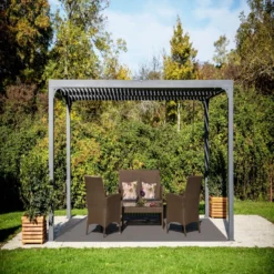 Pergola Bioclimatique Aluminium Anthracite 10,80m² + Toit Avec Lames Ovales Aluminium HABRITA