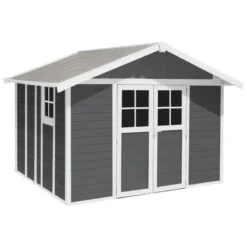 Abri De Jardin En PVC 11,2m² DECO Gris Foncé Et Blanc Grosfillex + Kit Ancrage Offert