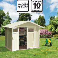 Abri De Jardin En Résine Beige 11m² + Kit De Fondation – JOBU