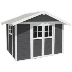 Abri De Jardin En PVC 7,5m² DECO Gris Foncé Et Blanc Grosfillex + Kit Ancrage Offert