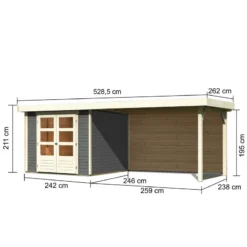 Abri De Jardin En Bois Massif Gris Terre 5,95m² Askola 3,5 Avec Appentis 240cm – Karibu
