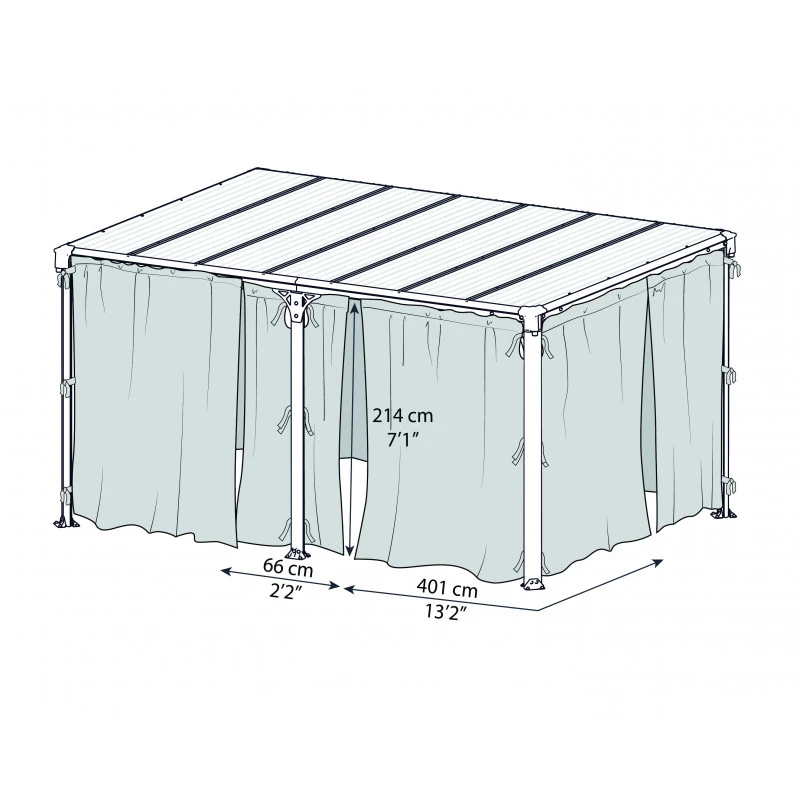 Offrez vous cet accessoire qui vous rendra bien service en cas de pluie, de vent ou si vous souhaitez fermer toute ou partie de votre pergola. Ce sont des rideaux de haute qualité gris, qui s’accordent donc parfaitement avec votre pergola Palram.